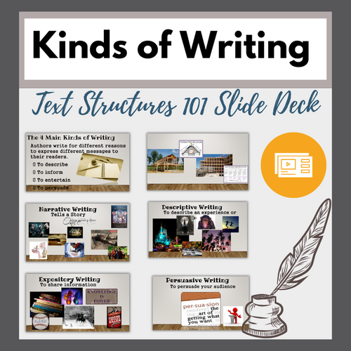 Introducing the importance of text structure using the Kinds of Writing Slide Deck. This week’s focus: Narrative Text Structure. Use the Student Handbook to increase understanding.