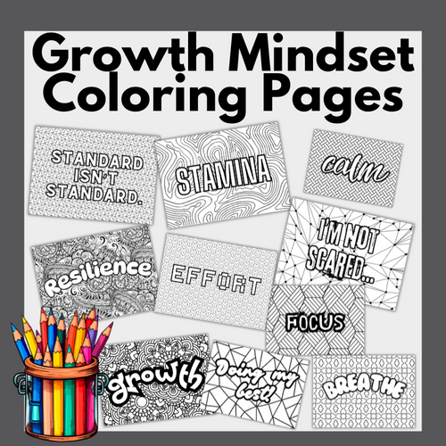 Growth Minset Coloring Page Pack for stress relief and inspiration in the coming weeks.