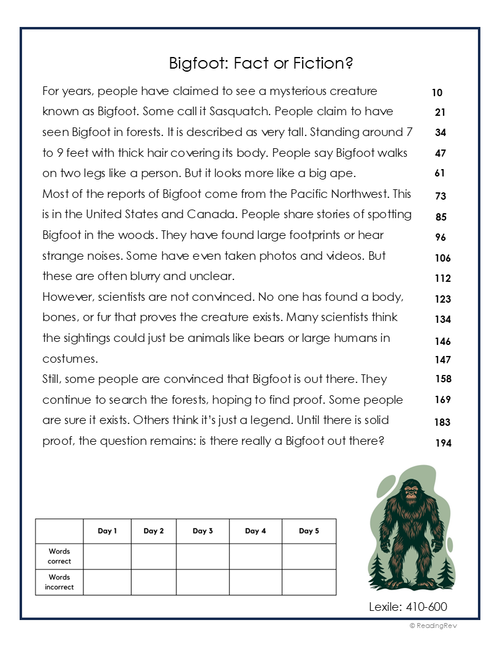 - 6 high-interest passages with word count (410-600 and 610-800 Lexile Level for each passage)