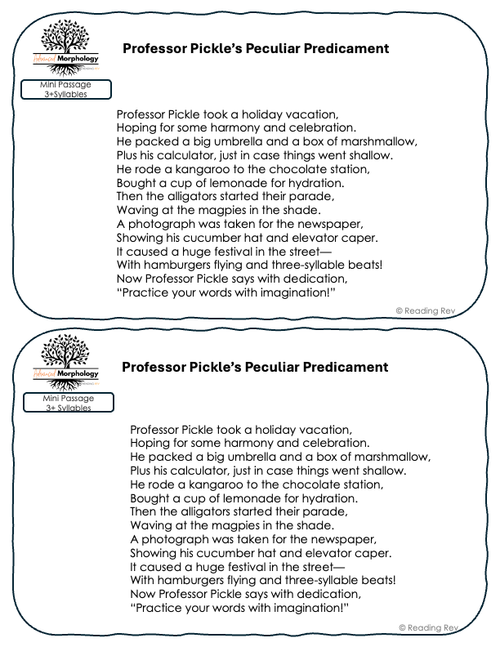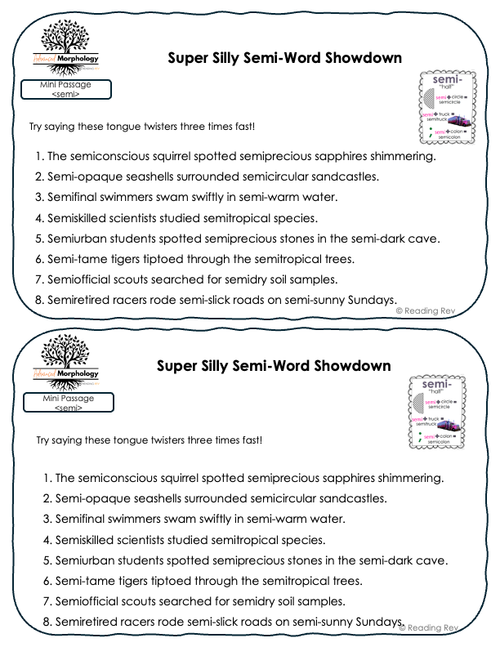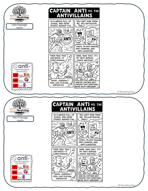 A resource designed to stretch students’ understanding of complex morphemes and word formation. These half-sheet passages challenge upper-elementary students to apply their knowledge of roots, prefixes, and suffixes in deeper, more sophisticated contexts. Through witty jokes, clever riddles, thought-provoking mini-stories, comics, recipes, and playful poems, students see advanced morphemes in action while building vocabulary and critical thinking skills.
