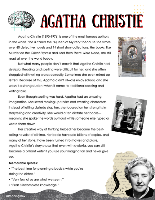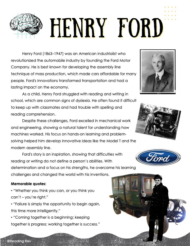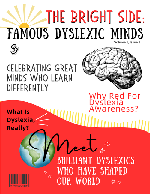 This engaging project turns your class into a publishing team! Students research a well-known person with dyslexia, draft a one-page feature using a kid-friendly template, and then compile everyone’s pages into a class Dyslexia Awareness Magazine (print or digital). Along the way, they practice research, note-taking, informative writing, visual design, and collaborative speaking & listening... while learning that different brains bring powerful strengths.